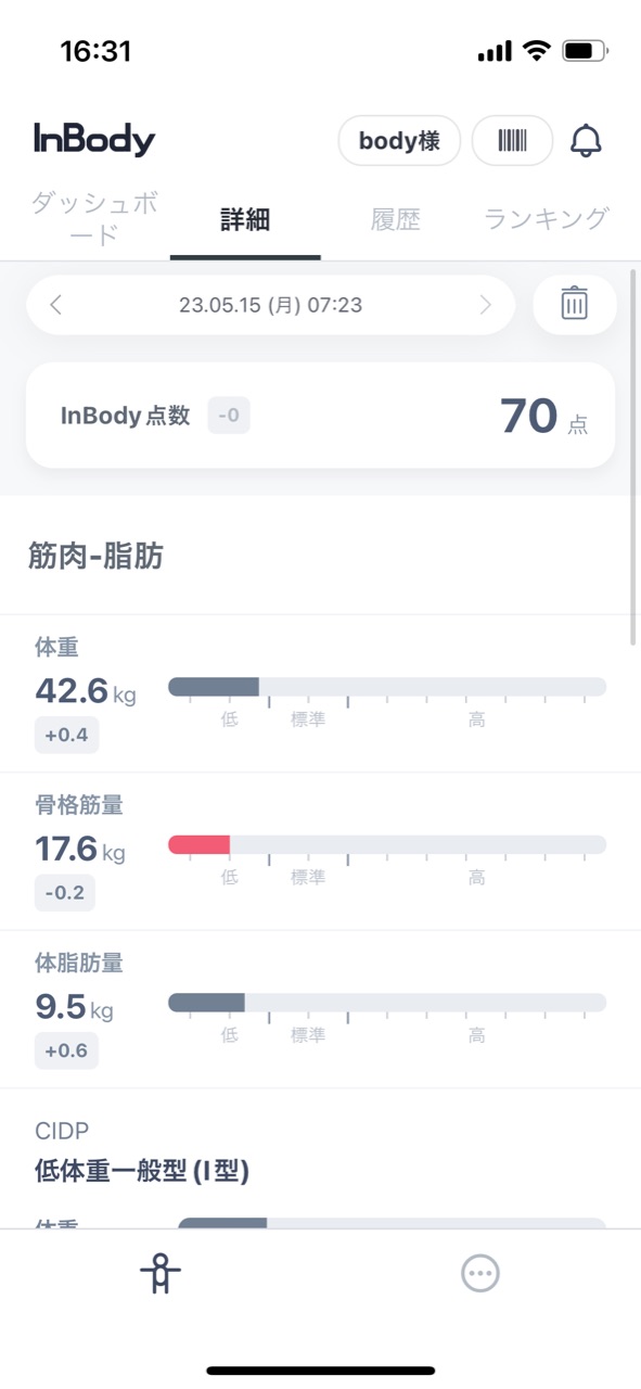【今日のカラダ】体重42.6kg 体脂肪率22.2% 【2023年5月15日(月)】