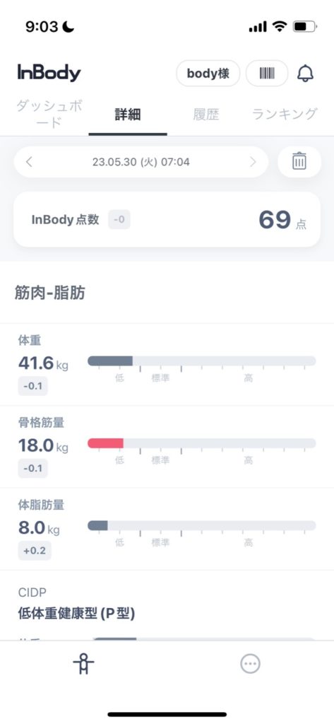【今日のカラダ】体重41.6kg 体脂肪率19.3% 【2023年5月30日(火)】