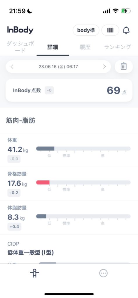 【今日のカラダ】体重41.2kg 体脂肪率20.2% 【2023年6月16日(金)】