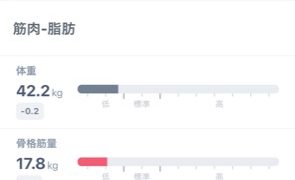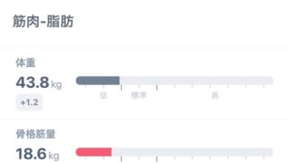 今日のカラダ(体重、体脂肪率など)体重42.2kg(+0.0)体脂肪率19.7%(+1.0)骨格筋量18.1kg(-0.3)体脂肪量8.3kg(-0.4)BMI16.9(+0.0)今日のカラダ筋トレが効いてきてる気がする数値だけでなく見た目...